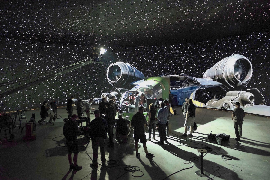 Como curiosidad del rodaje de The Mandalorian, la empresa de efectos visuales Industrial Light & Magic desarrolló la tecnología Stagecraft para la serie, utilizando escenarios virtuales y un "video wall" de 360 grados para crear los entornos. Una tecnología que ha sido adoptada posteriormente en otras producciones cinematográficas y televisivas.
